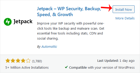 4. The available plugins matching the keyword Security will appear. Click on Install Now, next to the plugin's name.